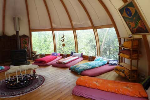 Zudem werden Yogamatten, Blöcke und Gurte vor Ort zur Verfügung gestellt.